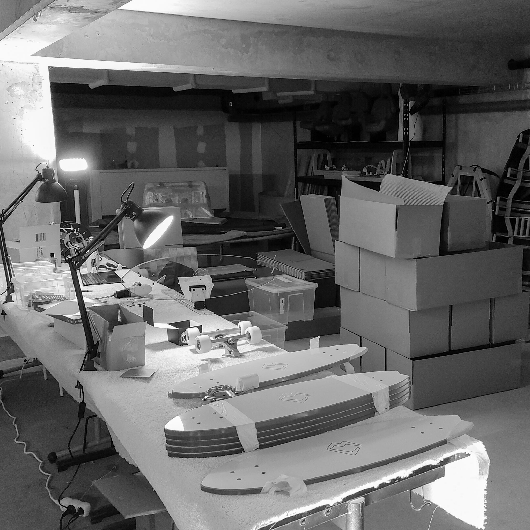 After making two prototypes in a local factory, the project was supposed to end there. But while walking down the street, I was surprised to be regularly stopped. People kept asking questions about my skateboard, and many of them mostly wanted to get one for themselves. That’s how Clear began the start of this entrepreneurial adventure in the back of a garage. I started building and assembling my first boards.