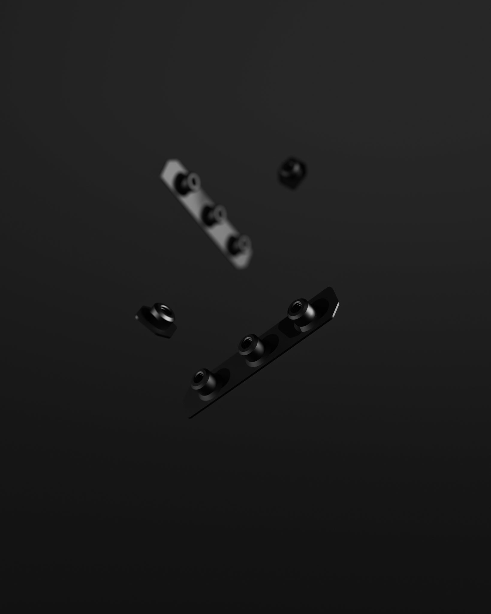 We are currently developing a range of pads, handles, and fins that will be available at the time of the first pre-order deliveries. If you wish to use components from another brand, the handle spacing is 150 mm center-to-center, and the fin spacing is 38 mm center-to-center.